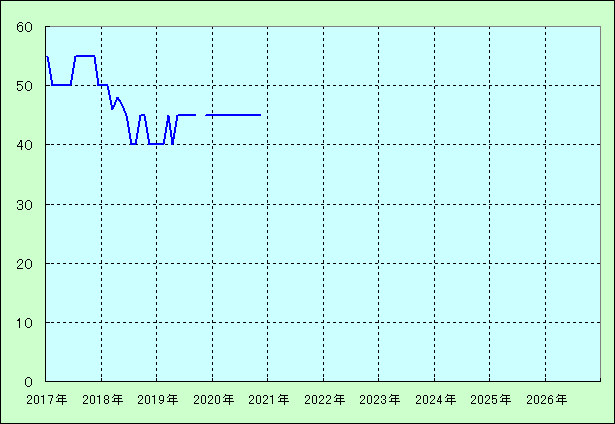 | 最高値 55万円(2017年07月) 最安値 40万円(2018年11月) |