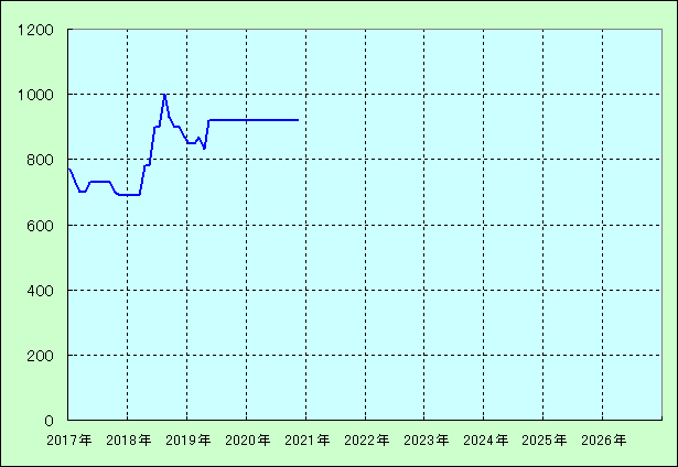 | 最高値 1000万円(2018年08月) 最安値 690万円(2017年12月) |