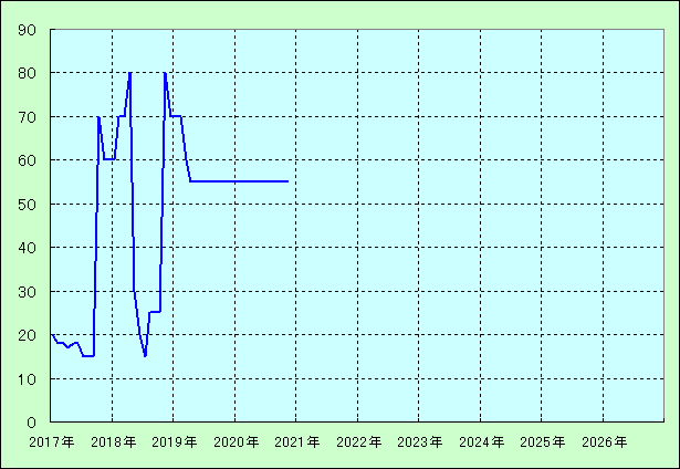 | 最高値 80万円(2018年04月) 最安値 15万円(2017年07月) |