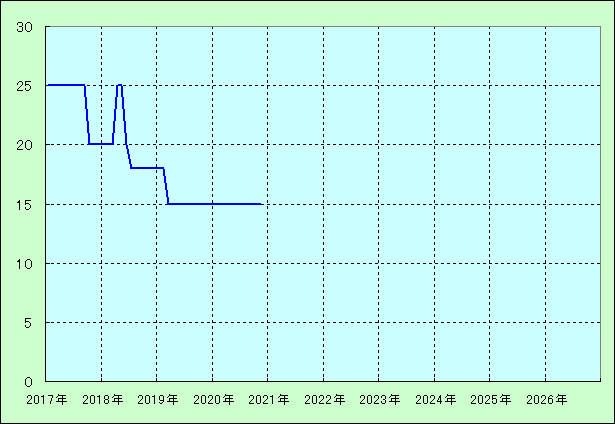 | 最高値 25万円(2017年02月) 最安値 15万円(2020年11月) |