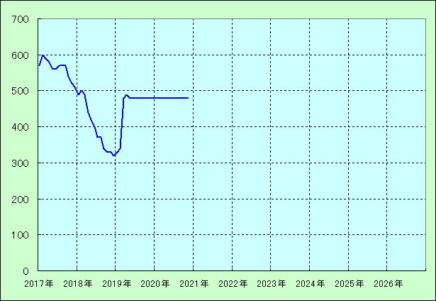 | 最高値 600万円(2017年02月) 最安値 320万円(2018年12月) |