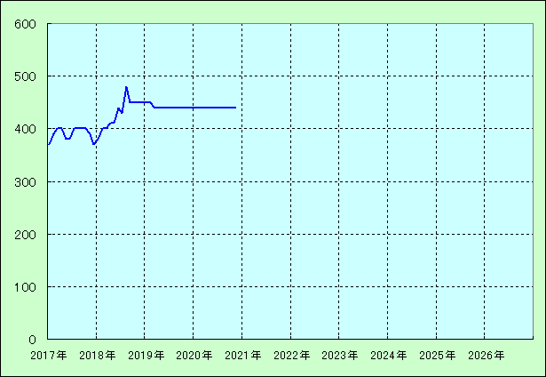 | 最高値 480万円(2018年08月) 最安値 370万円(2017年01月) |