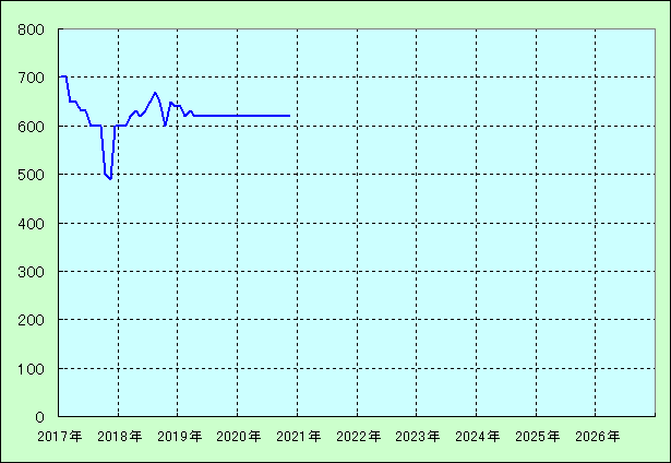| 最高値 700万円(2017年02月) 最安値 490万円(2017年11月) |