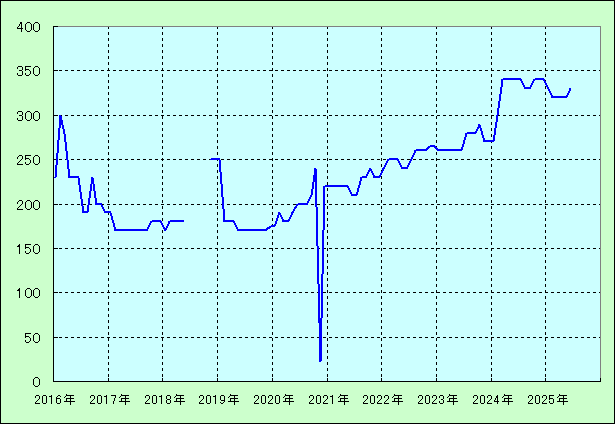 | 最高値 340万円(2024年12月) 最安値 22万円(2020年11月) |