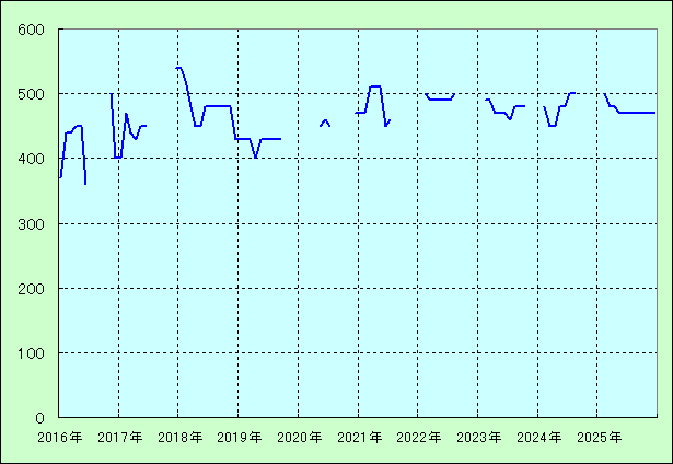 | 最高値 540万円(2017年12月) 最安値 360万円(2016年06月) |