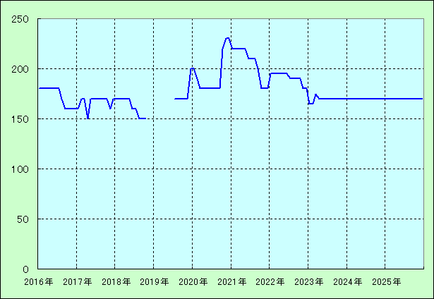 | 最高値 230万円(2020年11月) 最安値 150万円(2018年10月) |