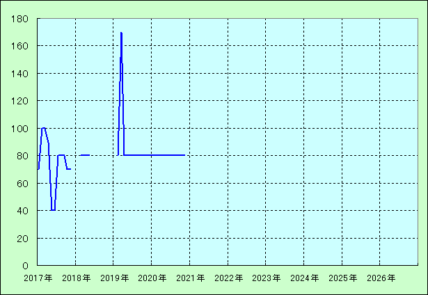 | 最高値 170万円(2019年03月) 最安値 40万円(2017年05月) |