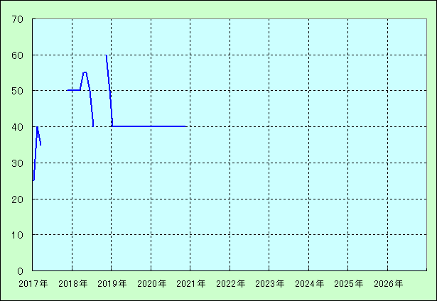 | 最高値 60万円(2018年11月) 最安値 25万円(2017年01月) |