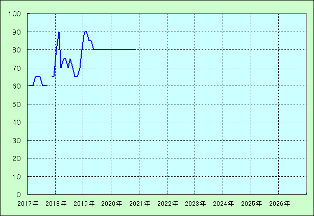 | 最高値 90万円(2019年01月) 最安値 60万円(2017年01月) |
