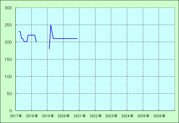 | 最高値 250万円(2019年03月) 最安値 180万円(2019年02月) |