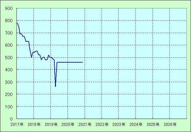| 最高値 780万円(2017年01月) 最安値 260万円(2019年04月) |