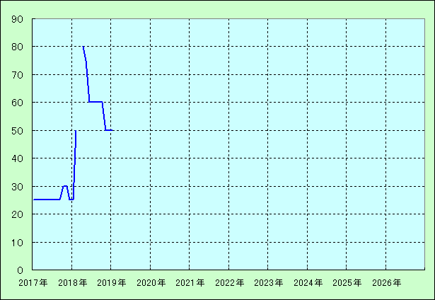 | 最高値 80万円(2018年04月) 最安値 25万円(2018年01月) |