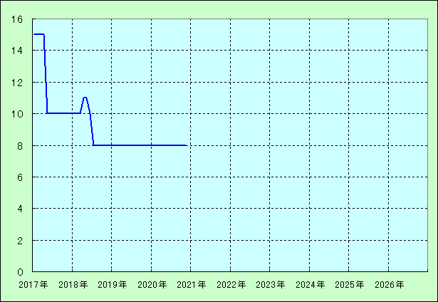 | 最高値 15万円(2017年02月) 最安値 8万円(2018年07月) |