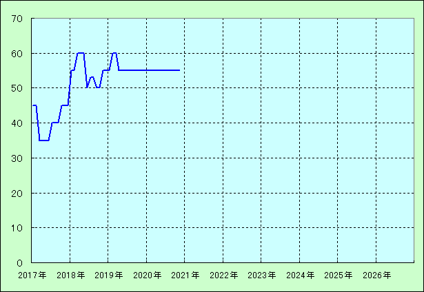 | 最高値 60万円(2019年02月) 最安値 35万円(2017年03月) |