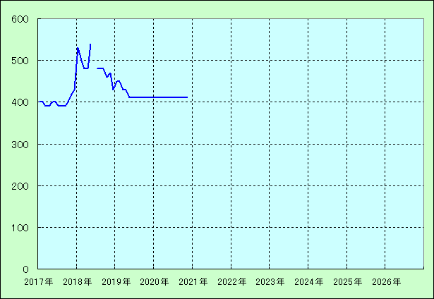 | 最高値 540万円(2018年05月) 最安値 390万円(2017年03月) |