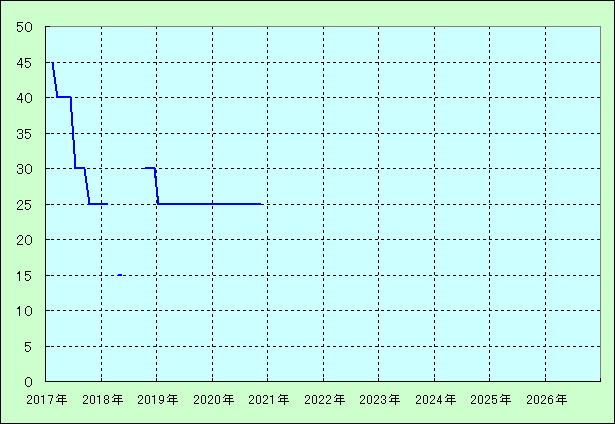 | 最高値 45万円(2017年02月) 最安値 15万円(2018年04月) |