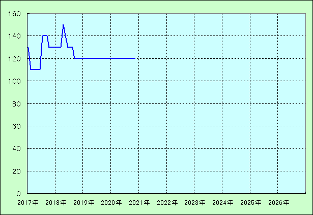 | 最高値 150万円(2018年04月) 最安値 110万円(2017年02月) |