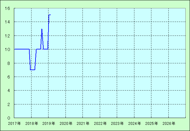 | 最高値 15万円(2019年01月) 最安値 7万円(2018年03月) |