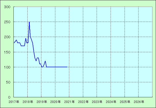 | 最高値 250万円(2018年02月) 最安値 100万円(2020年11月) |