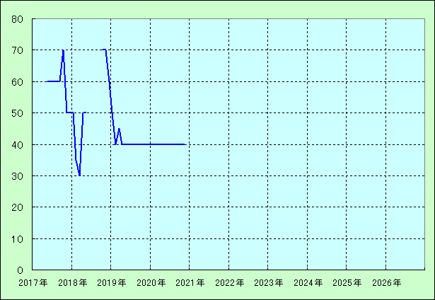 | 最高値 70万円(2017年10月) 最安値 30万円(2018年03月) |