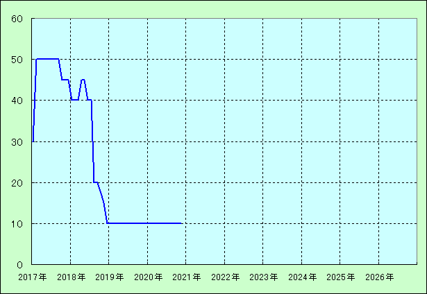 | 最高値 50万円(2017年02月) 最安値 10万円(2020年11月) |