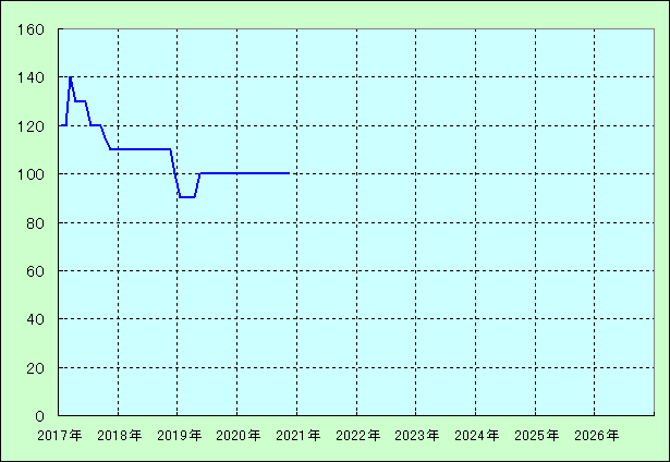 | 最高値 140万円(2017年03月) 最安値 90万円(2019年01月) |