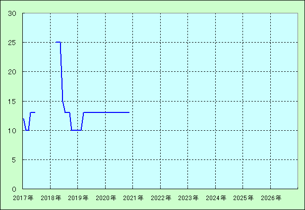 | 最高値 25万円(2018年03月) 最安値 10万円(2017年02月) |