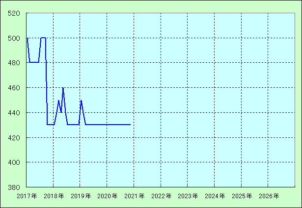| 最高値 500万円(2017年07月) 最安値 430万円(2017年10月) |