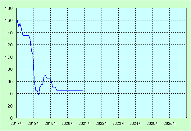 | 最高値 160万円(2017年01月) 最安値 38万円(2018年04月) |