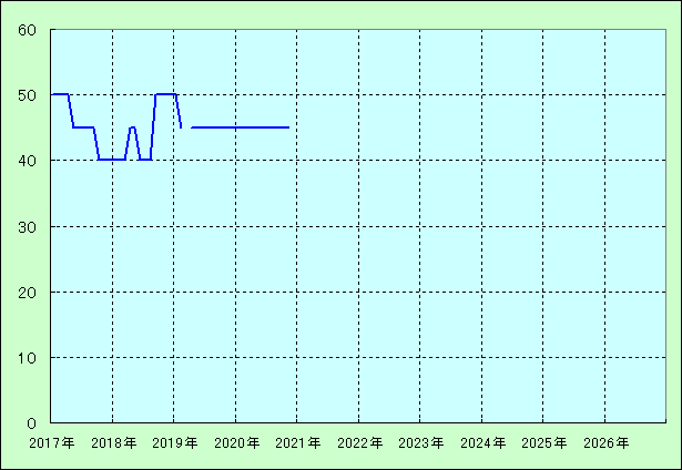| 最高値 50万円(2017年02月) 最安値 40万円(2017年12月) |