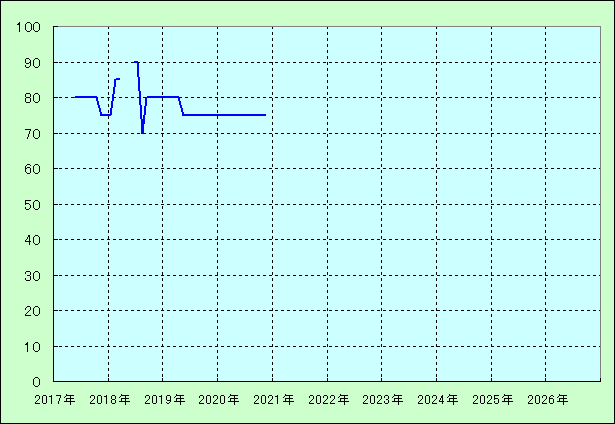 | 最高値 90万円(2018年06月) 最安値 70万円(2018年08月) |