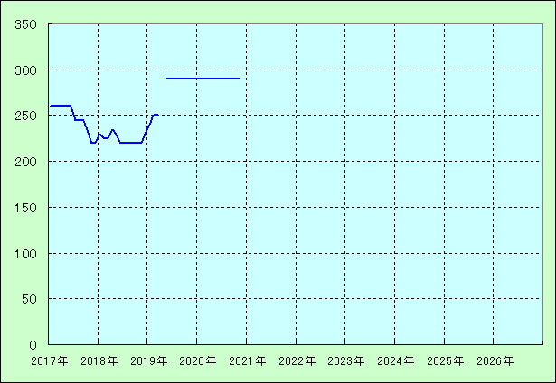 | 最高値 290万円(2020年11月) 最安値 220万円(2018年11月) |