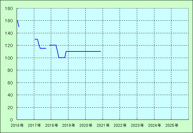 | 最高値 160万円(2016年01月) 最安値 100万円(2018年06月) |