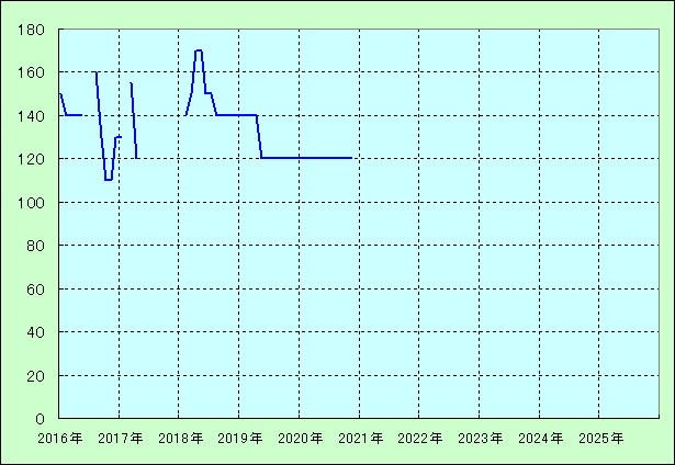 | 最高値 170万円(2018年04月) 最安値 110万円(2016年10月) |