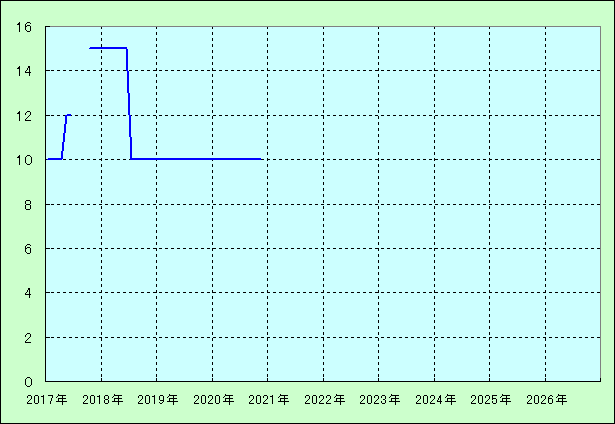 | 最高値 15万円(2018年04月) 最安値 10万円(2017年02月) |