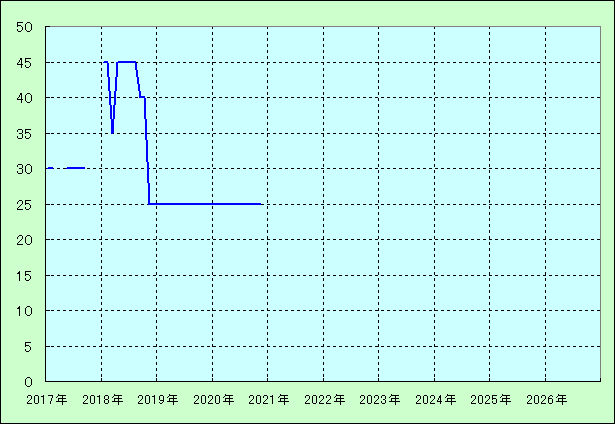 | 最高値 45万円(2018年08月) 最安値 25万円(2018年11月) |