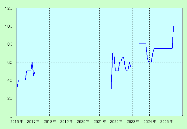 | 最高値 100万円(2025年06月) 最安値 30万円(2016年01月) |