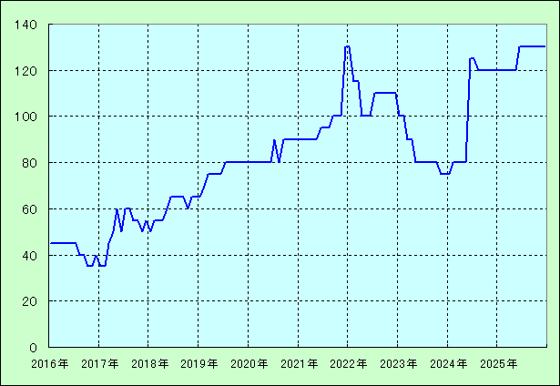 | 最高値 130万円(2022年01月) 最安値 35万円(2016年10月) |