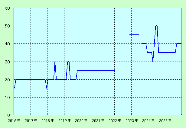 | 最高値 50万円(2024年07月) 最安値 15万円(2016年01月) |