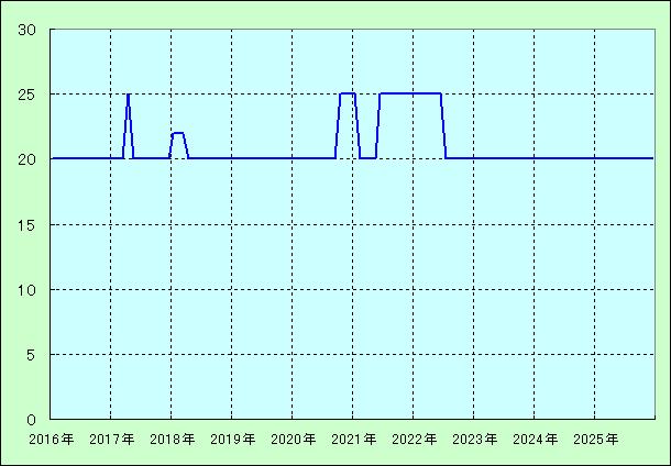 | 最高値 25万円(2021年07月) 最安値 20万円(2018年11月) |