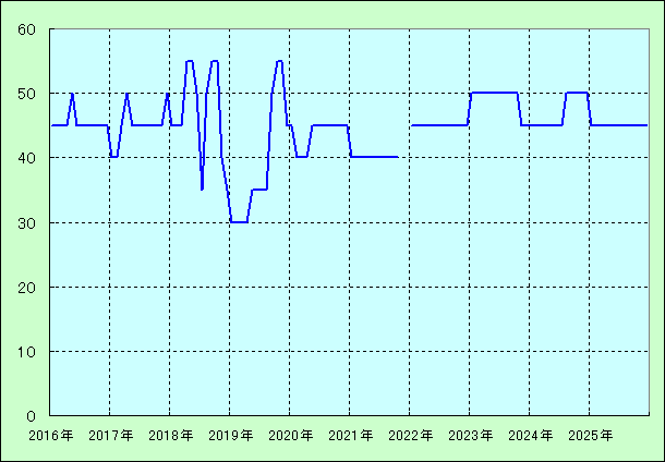 | 最高値 55万円(2019年11月) 最安値 30万円(2019年03月) |